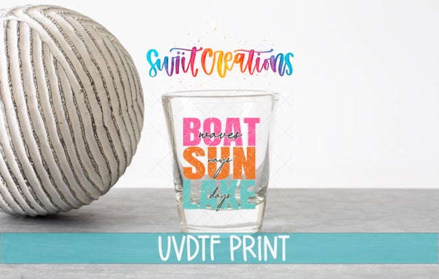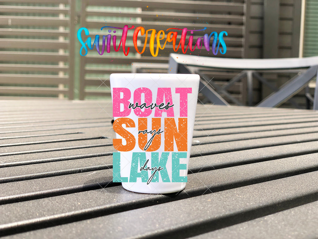 Boat Wave Sun Rays Lake Days UV DTF Shot Glass Transfer | SG850