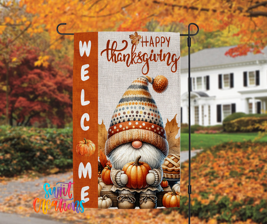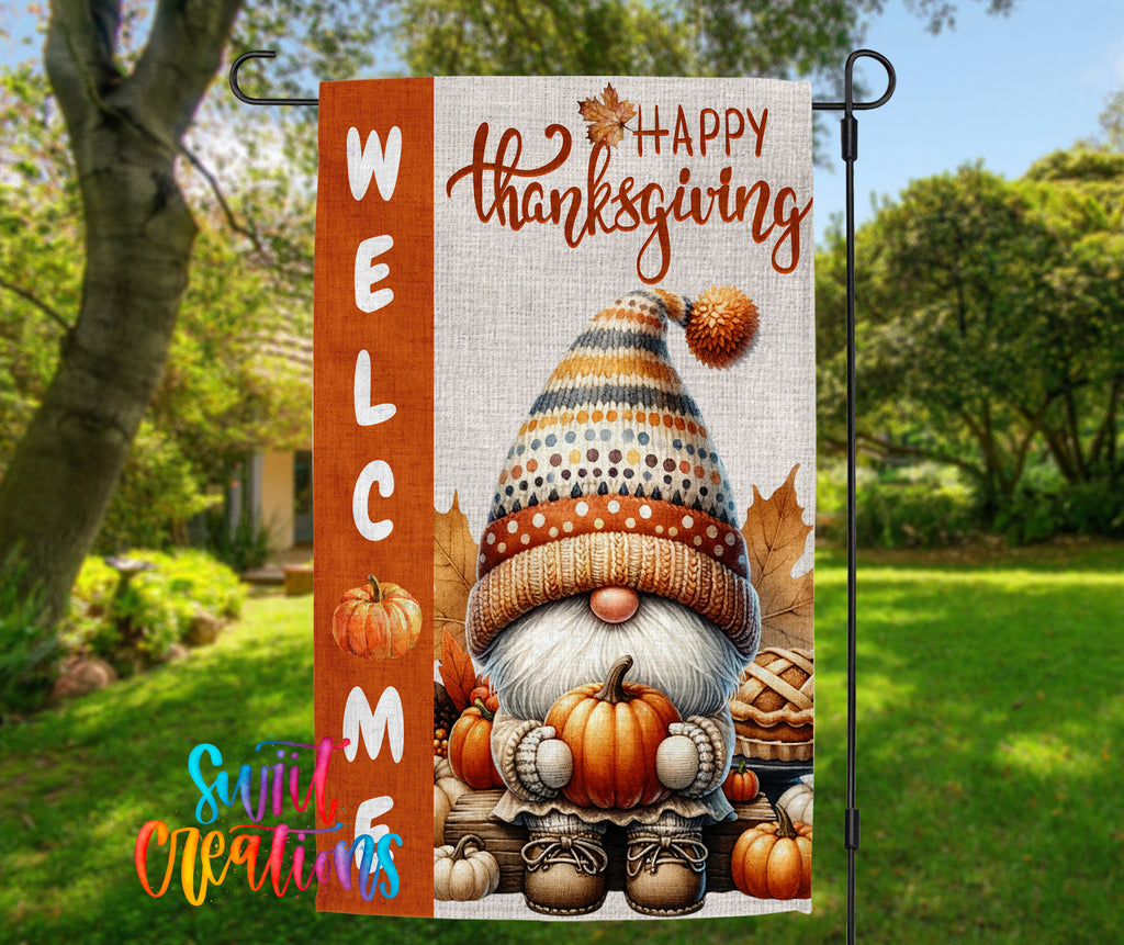 Happy Thanksgiving Yard Flag | Fall Gnome Garden Flag with Pumpkins | Cute Outdoor Autumn Decor | YF80