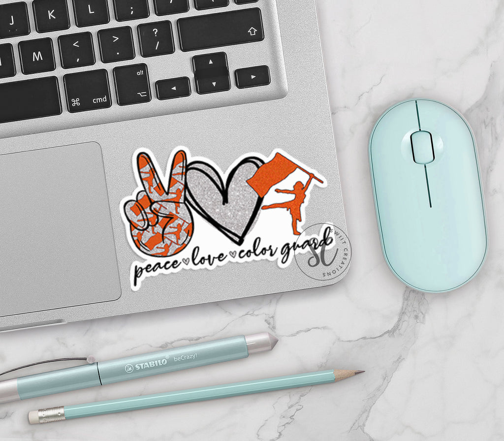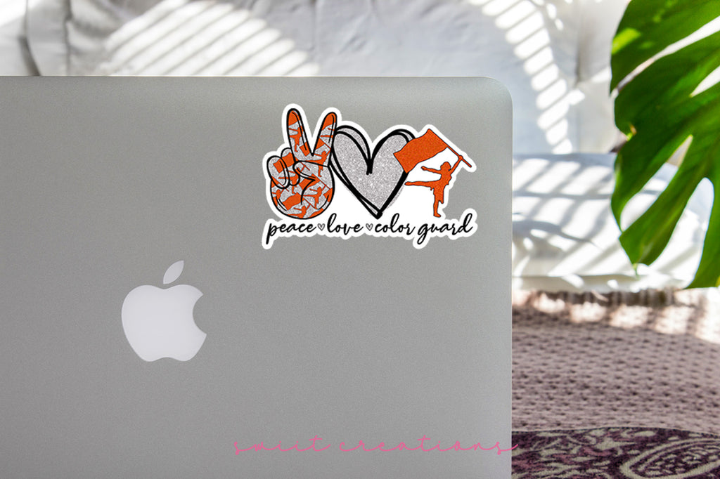 Peace Love Color Guard Orange and Silver Sticker SS291
